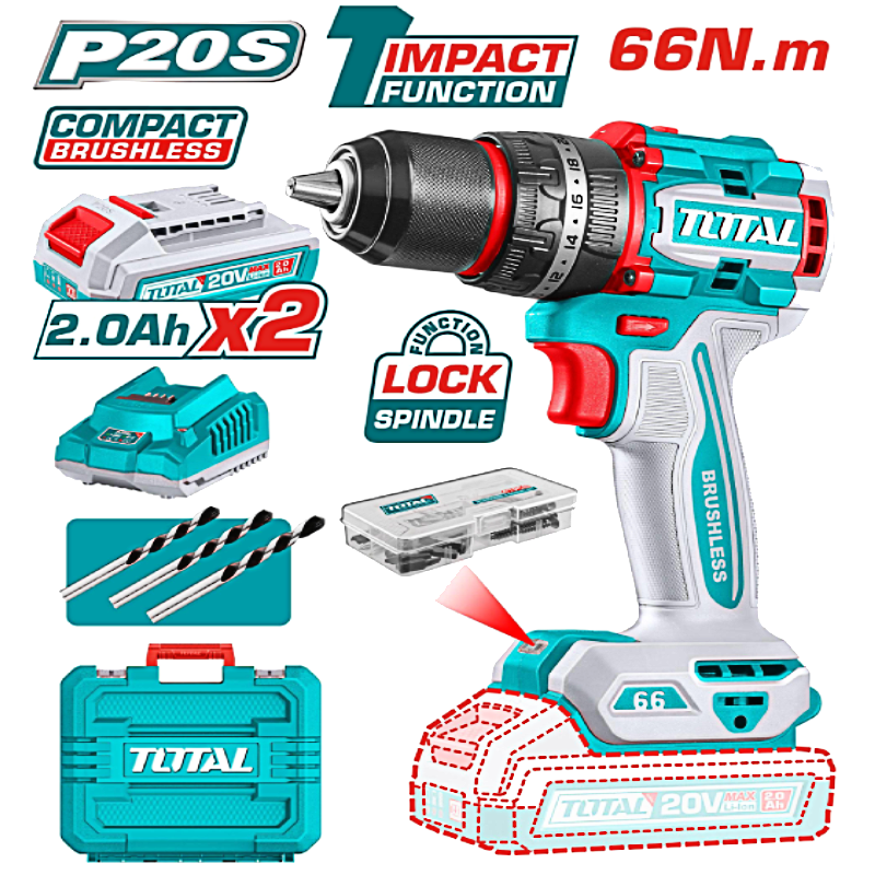 العلامة التجارية:توتال شنيور 13مم – 20 فولت 66 نيوتن – 2 بطارية